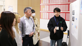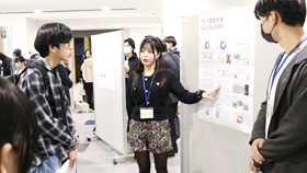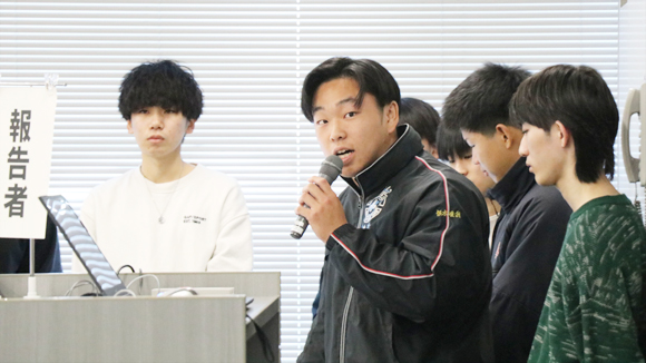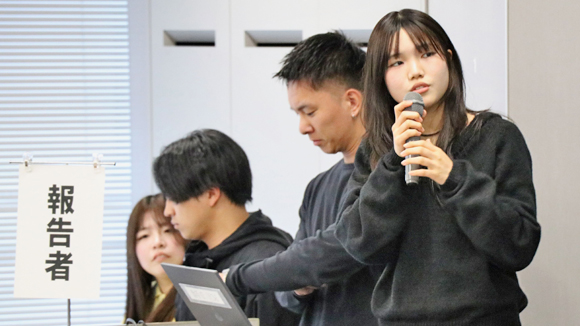 2025年12月6日(土)、第24回「ゼミナールレポートフェスティバル」が開催されました。2年生以上が所属する専門ゼミナールでは、自分たちの意見を分かりやすく伝える工夫をし、チームのみんなが力を合わせて研究成果を発表しました。普段はそれぞれに活動しているゼミが一堂に会して、他のゼミの学生や教員と意見交換する場ともなりました。今年度は16ゼミナールから39の研究報告、20のポスター発表がありました。真剣な研究報告と熱のこもった議論の様子を写真で紹介します。